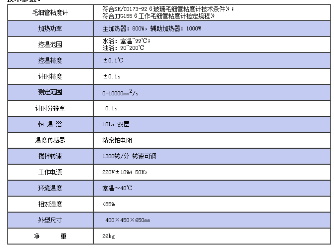 仪器符合GB/T265的标准,也适用于GB1841标准所规定的塑料树脂等其他产品的运动粘度。该仪器是测定牛顿液体(即剪切应力和剪切率为一常数的液体)在重力下流过一个标定好的玻璃毛细管粘度计的时间。整个过程在恒温良好的水浴中进行,并配有高精度的计时器,方便了操作,提高了工作效率。